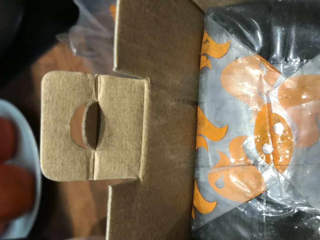 Пакетик с углем слева – паленый – он словно просто пакет полиэтиленовый, бесформенный. Ну взяли дешевый рукав из полиэтилена и начали штамповать. Справа пакет по форме напоминает параллелепипед, образованный самим углем. Ну и цвет печати “огонька” на полиэтилене отличается – слева он темно оранжевый, справа – светло оранжевый.