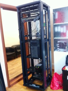 Закупил клиентам стойку Maxsys на 42U. В нее предполагается убрать все оборудование, которое сейчас завешено в углу, включая сервер. Вот как оно было. А ведь когда-то давно, когда мы только начинали с ними работать – в этом уголочке была чистота и порядок. С годами все поросло проводами, чужеродными устройствами.